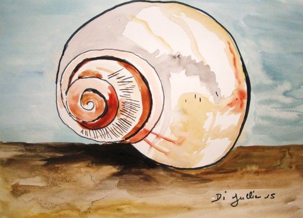 Aquarelle et acrylique nature morte au coquillage sur papier dim 21X30